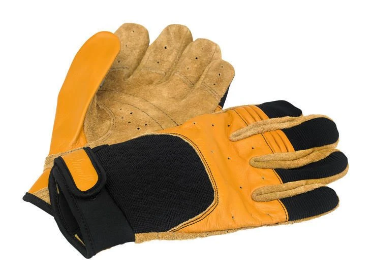 - Heavy-duty leather construction in palm, fingers and thumbs