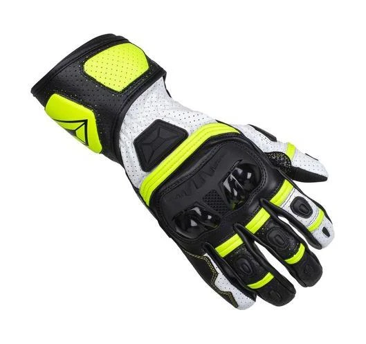 Cortech trickles racetrack technology down to the street-ready Chicane RR Gloves. Full leather construction is upgraded with goat hide at the palm for better flexibility and tactile feel. Reinforcement of Clarino leatherette over the palm, again, boosts the protection and durability where it counts most. Hard TPU finger and knuckle protection are carry-overs from the track. Silicone grips at the index, middle finger and crook of hand maintain good communication between rider and throttle. Generous levels of perforation start at the touchscreen-friendly fingertips and continuesall the way to the end of the gauntlet. Double hook and loop closures at the wrist and cuff secure the fit against whatever the ride may bring.Â