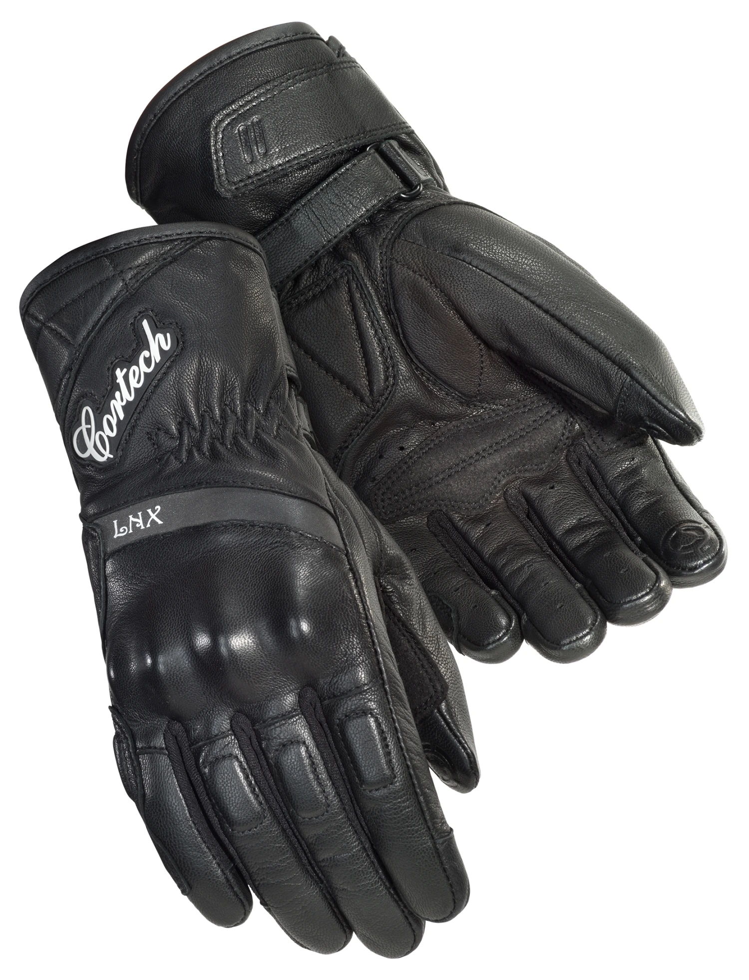 The Cortech LNX Women’s Gloves leave no part of the hand exposed to abrasion with a durable full-gauntlet leather and Clarino construction for total coverage. Breathable 4-way stretch at the finger fourchettes affords flexibility and air exchange between the fingers for comfort, which touchscreen capability is built right into the goatskin at the tips of the thumb and forefinger for added convenience without sacrificing slide protection.