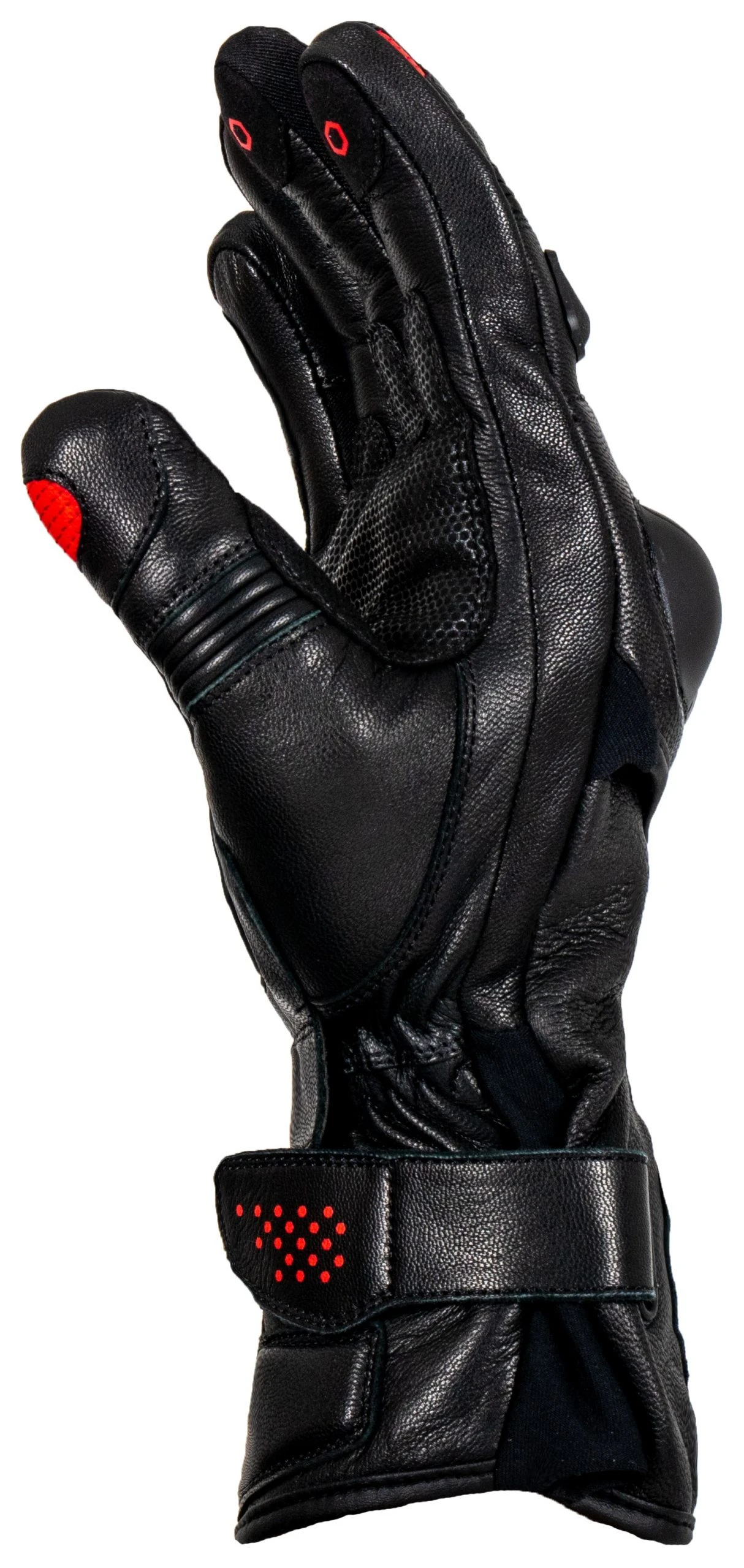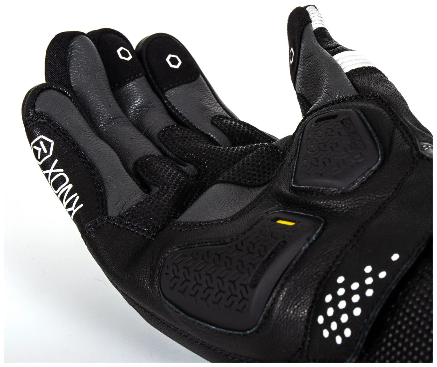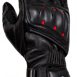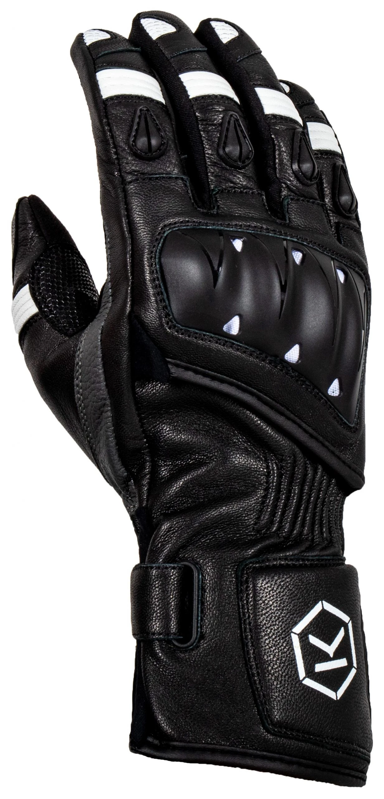 The Knox Oulton glove is a high performance sports glove with a great fit. It has clean and stylish lines and works as well on the road as it does on the track. It’s made from premium strong goat skin leather. This is complemented with a new innovative two-part TPU knuckle guard, which features air channels, extends over the metacarpals and out to the little finger, and has added Micro-Lock for impact absorption. The reinforced leather wrap on the edge of the hand delivers added strength with a smart single pull eyelet strap for easy and secure fitting. This covers the seams on the side of the hand where most riders tend to fall in the event of a crash.
