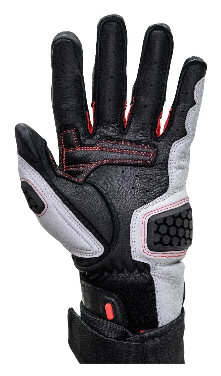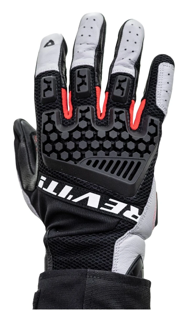 The REV”IT! Dune Gloves are a tour superior glove constructed from a mesh leather combination. A double layered palm combines with soft knuckle protection for all around hand protection. Adjustment tabs on wrist allow for a truly customized level of comfort while a conductive fingertip lets riders manage GPS and mobile devices without the removal of gloves.
