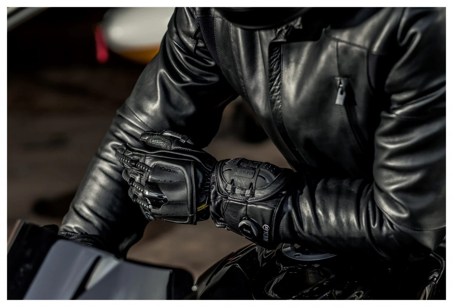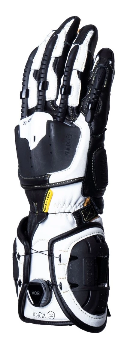The latest version of the award winning Knox Handroid long cuff glove, is the MK4. Due to its design these are the most striking motorcycle gloves ever made. The design includes features such as the scaphoid protection system as well as the eye catching exo skeleton finger spines which cover the tops of the fingers for impact protection as well as a unique closing system which always ensures a perfect fit.