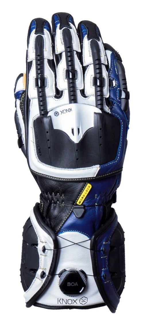 A new SPS impact system is the most recent development of the Knox patented Scaphoid protection system. This now has Micro-Lock armor incorporated into the design of each slider. Because the BOA closure system is so effective the Handroid now no longer needs a second hook and loop closure strap on the wrist. Box construction of the fingers makes for an even more comfortable glove that fits even better than previous models.