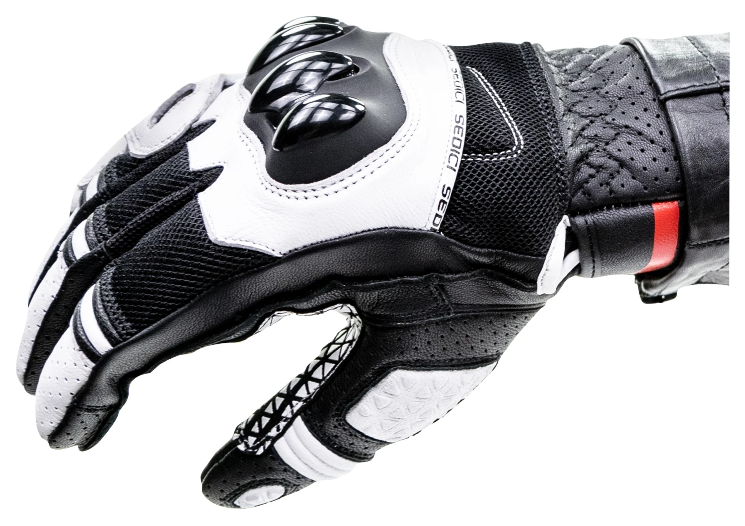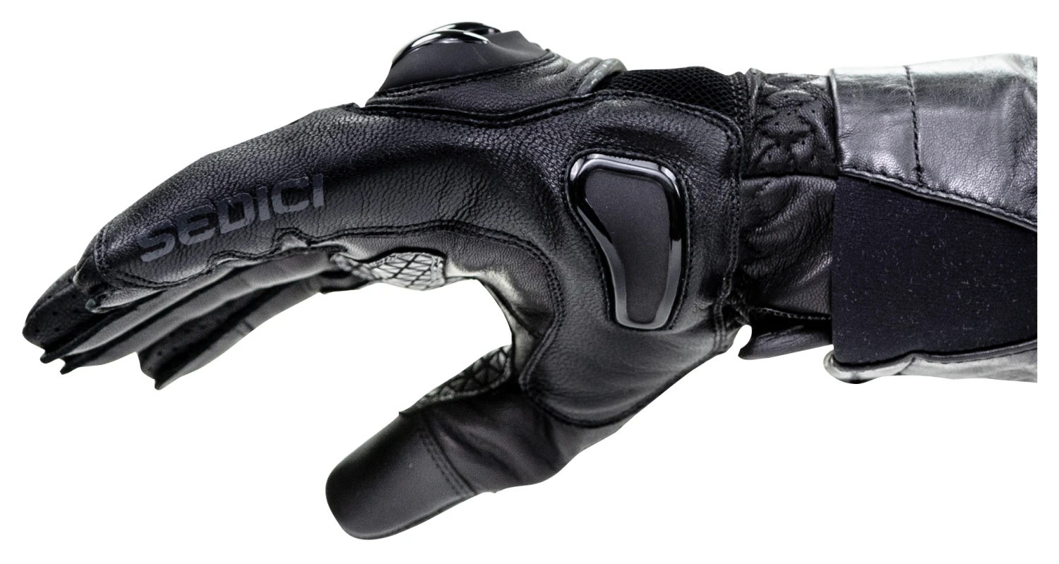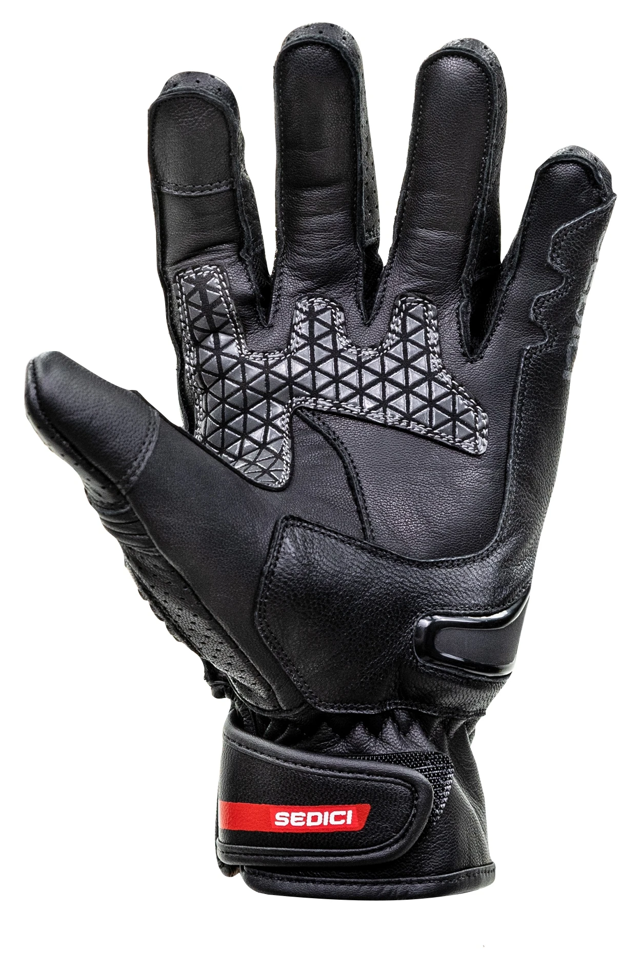 Suit up for your next ride with the Sedici Vento short cuff gloves. The drum dyed goat skin leather and precurved construction will provide added comfort and reduced fatigue on your ride. The Vento gloves also feature Touch tech on the index finger and thumb for easier access to your phone or GPS system.