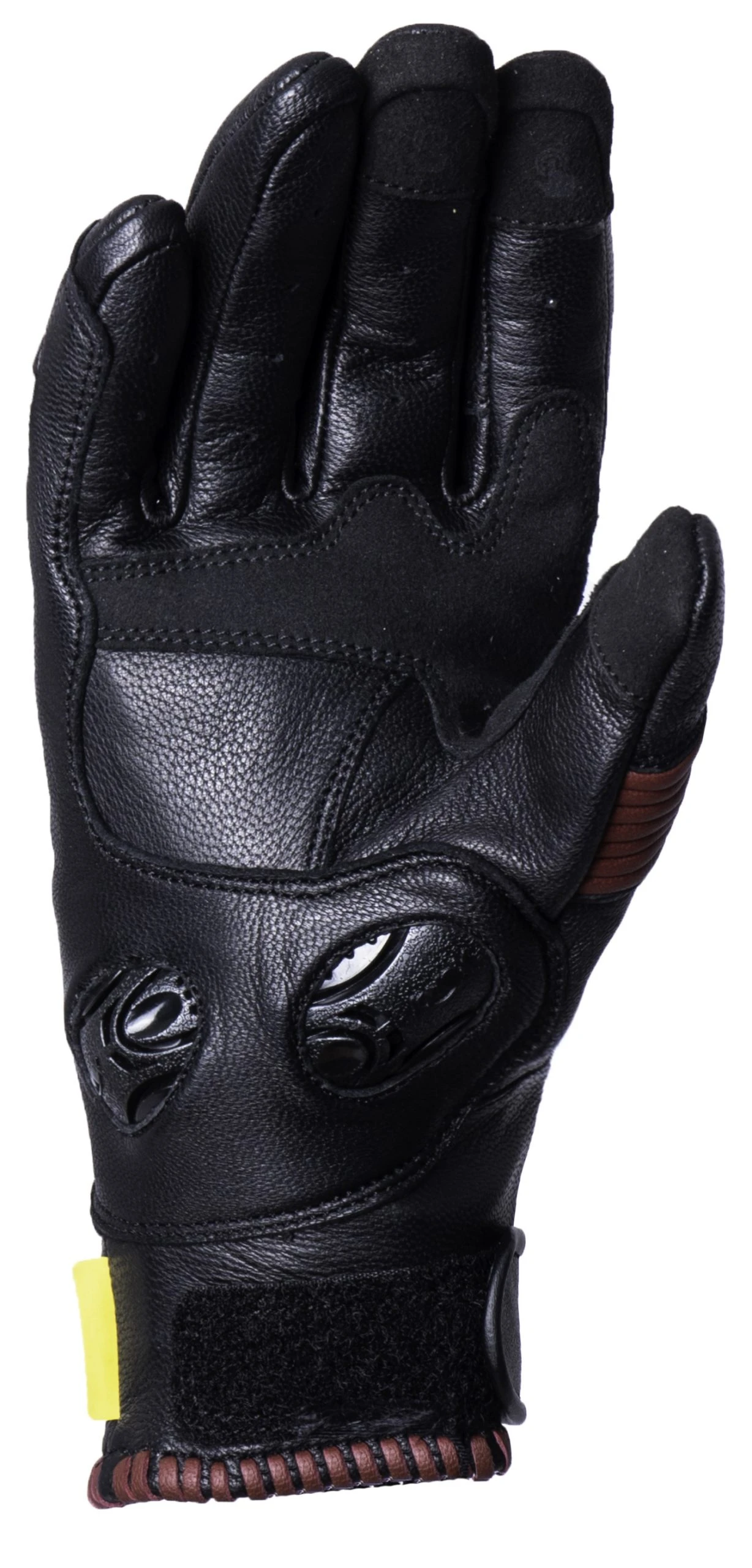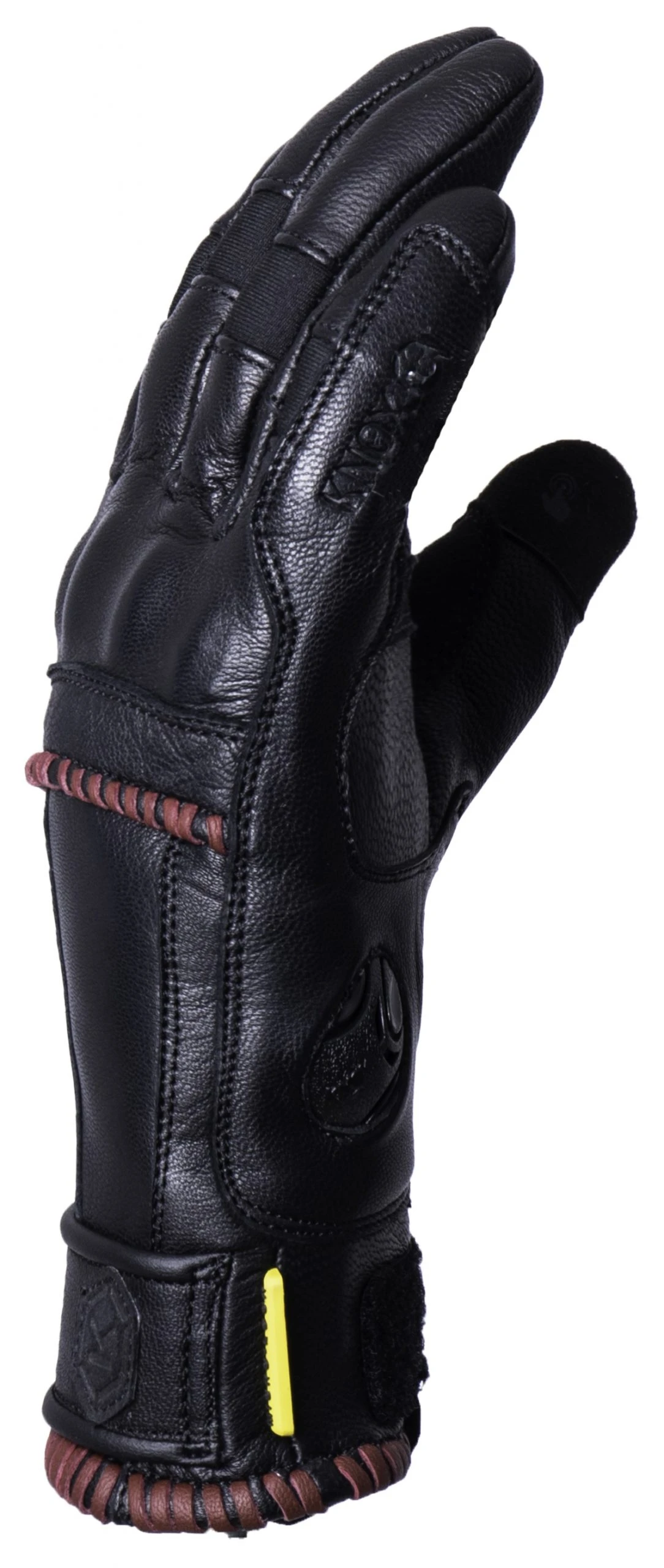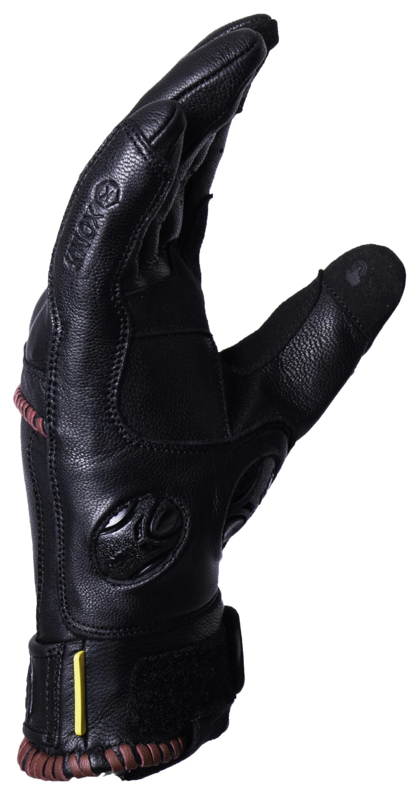 Knox stylish Whip women’s short cuff leather gloves are finished with a luxurious leather whipping detail on the back of the hand and on the cuff. These are made from a soft but strong goatskin and come with a molded Knox Micro-Lock knuckle for impact resistance as well as touch screen compatible fingers. These gloves also utilize the patented low profile Knox Scaphoid Protection System (SPS) on the palm. This eliminates the grab effect that occurs when a leather palm makes contact with a road, and in turn reduces the risk of hyper extension which can be the cause of a broken scaphoid.