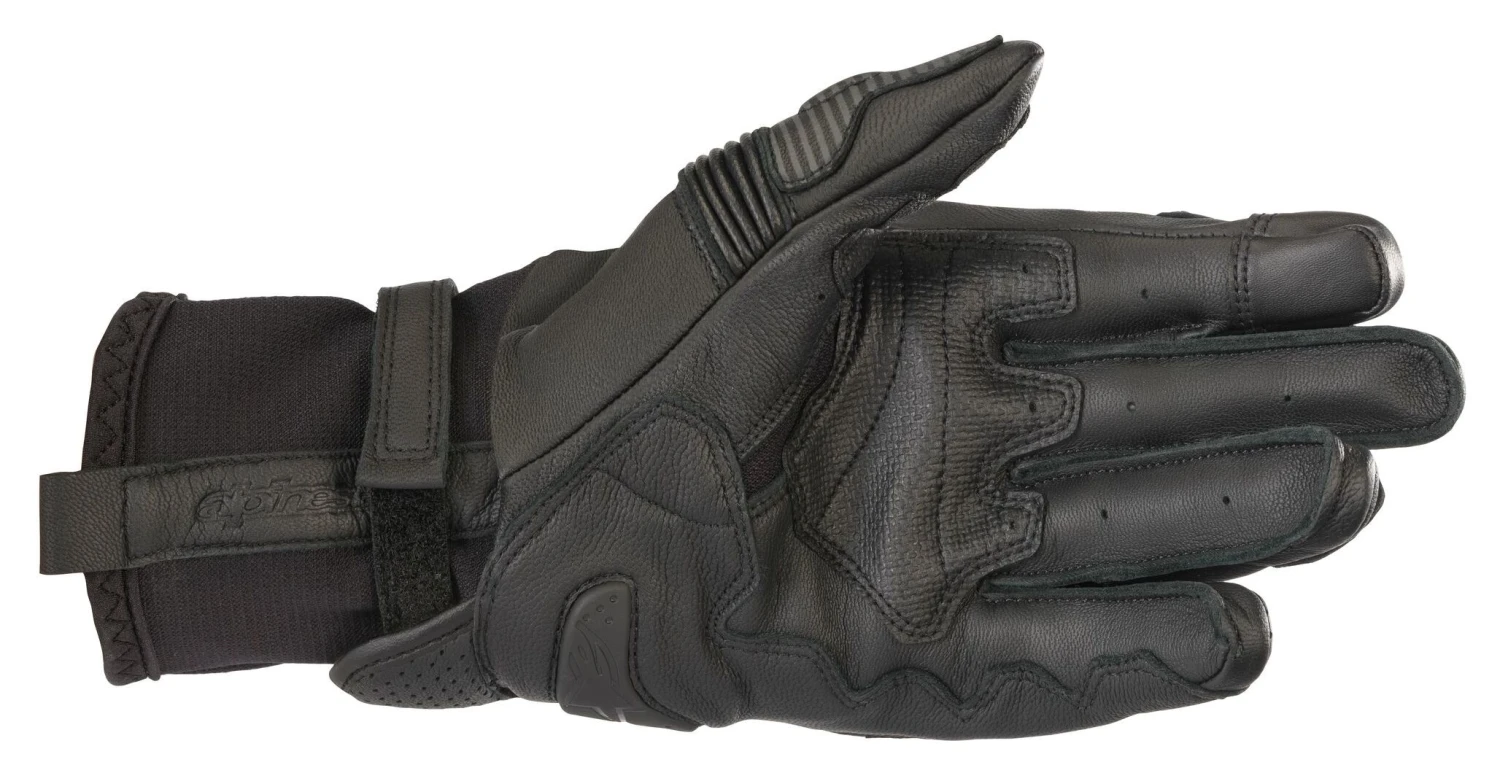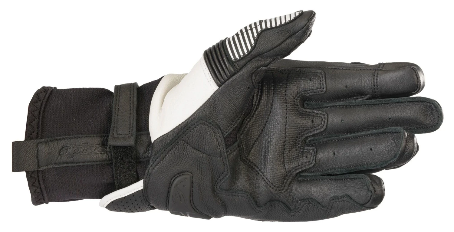 The Alpinestars GPX V2 Gloves split the difference between a long gauntlet glove and short cuff for a protective glove that is just right. Outer seam construction on the palms and fingers alleviate pressure points common with internal seams when gripping your controls. A textile cuff is designed to tuck into the sleeve of your jacket to add both comfort and protection. Hard knuckle protection, a finger bridge and a hard palm slider are all safety features to help protect you on your ride. Accordion stretch sections along the fingers and thumb provide freedom of movement.Â