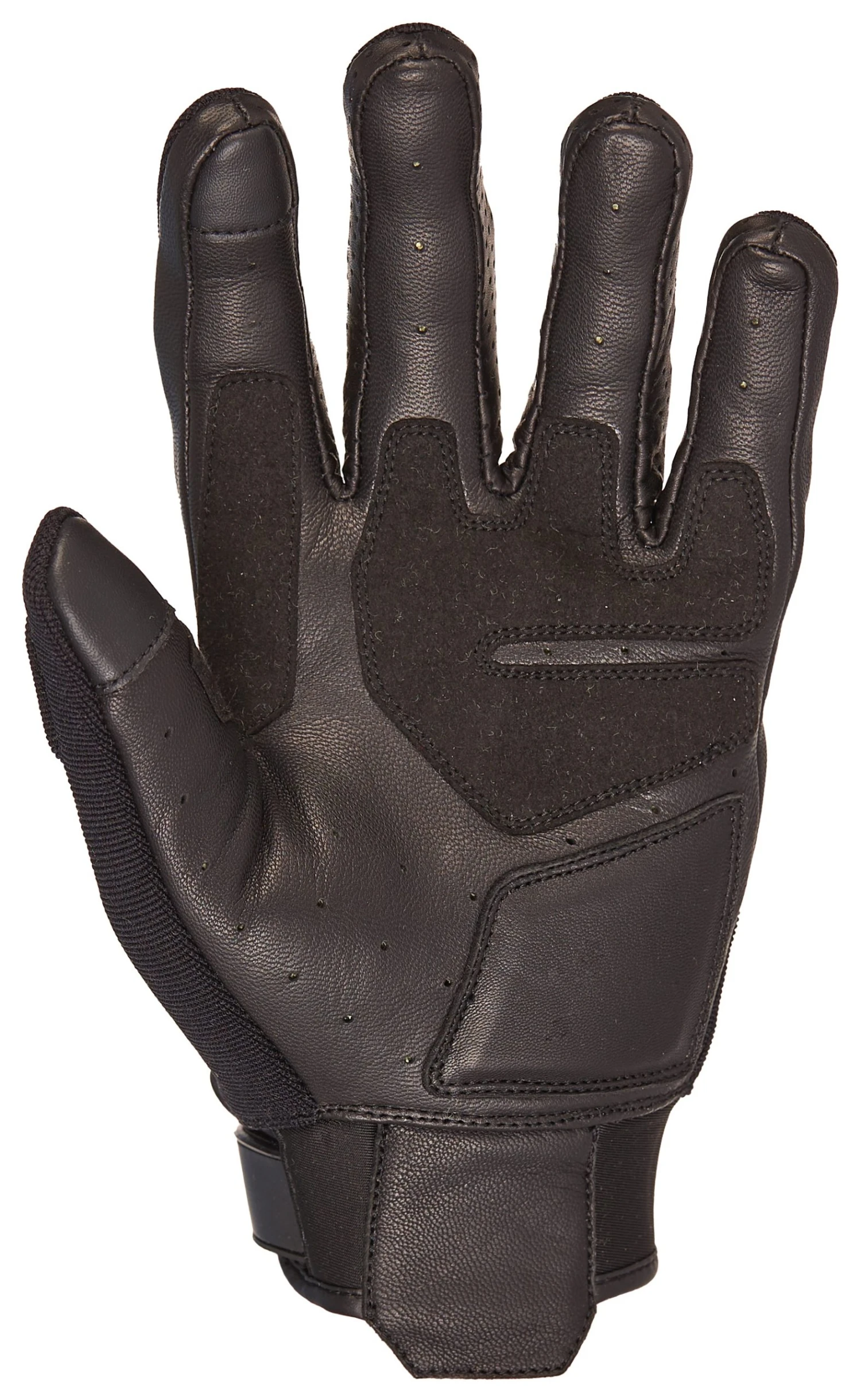 The Street & Steel Holeshot 2 Gloves are the perfect lightweight glove for cruising to your choice watering hole or a Sunday afternoon scoot . The improved Holeshot 2 gloves feature hourglass finger seams and precurved palm for a true tactical fit. In addition, a leather wrist closure and suede grip overlay make for less bulk and improved comfort. Breathable textile makes up the top portion of the glove for excellent ventilation and the goatskin leather palm holds up to abrasion while still allowing lots of tactile feedback with your controls. Aramid lining along the palm adds even more protection against abrasion and heat from friction. Touchscreen compatible index finger and thumb lets you operate a touch screen without having to remove your gloves.Â