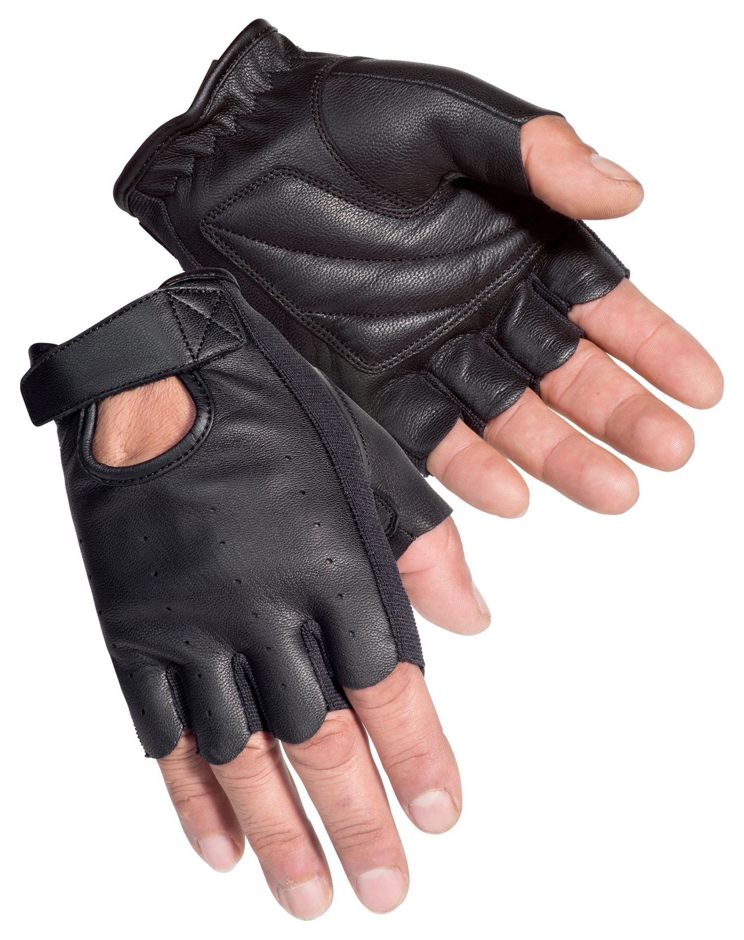 Catch a tan on the ends of your fingers with the Tour Master Select Fingerless 2.0 Gloves. Goatskin leather throughout, this short cuff glove has a hook-and-loop wrist closure.