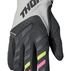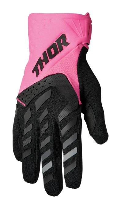 The Thor Spectrum Women’s Gloves are the perfect do-it-all glove for wherever your ride takes you. Strategically placed TPR’s and molded foam inserts are designed for optimal backhand coverage, while the lightly padded palm provides a comfortable grip on the bar. A mesh and Airpene construction delivers premium air flow for cool, dry hands all moto long.